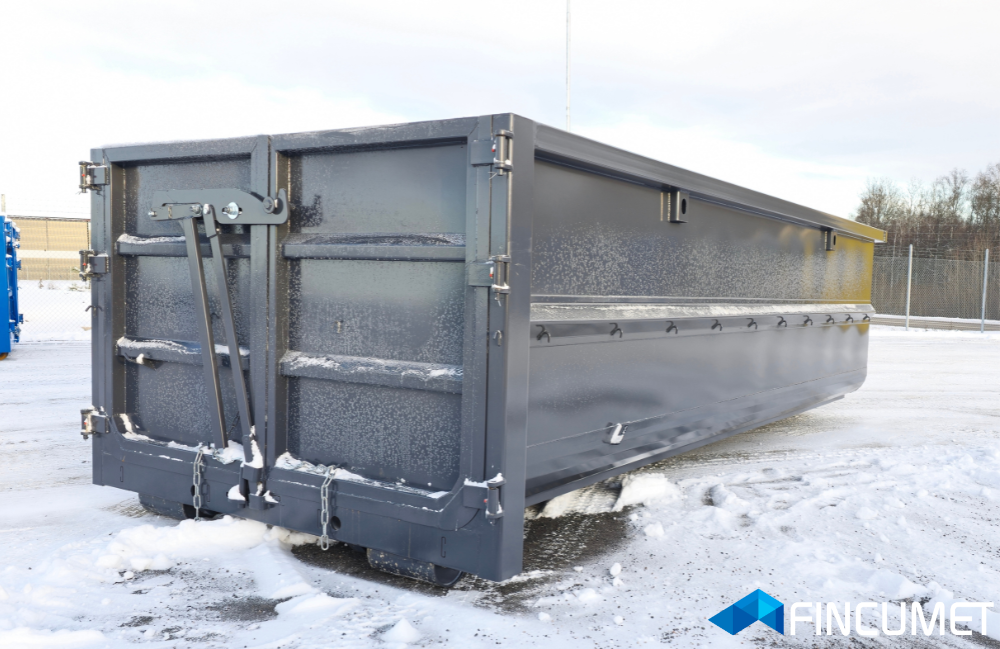 Strenx-seriens 22 m³ container är en hållbar och mångsidig lösning tillverkad av SSAB:s Strenx konstruktionsstål. Den är designad för att klara tuff användning och har lång livslängd. Containern är dessutom lättare tack vare sin horisontella stödstruktur, vilket minskar luftmotståndet under transport.